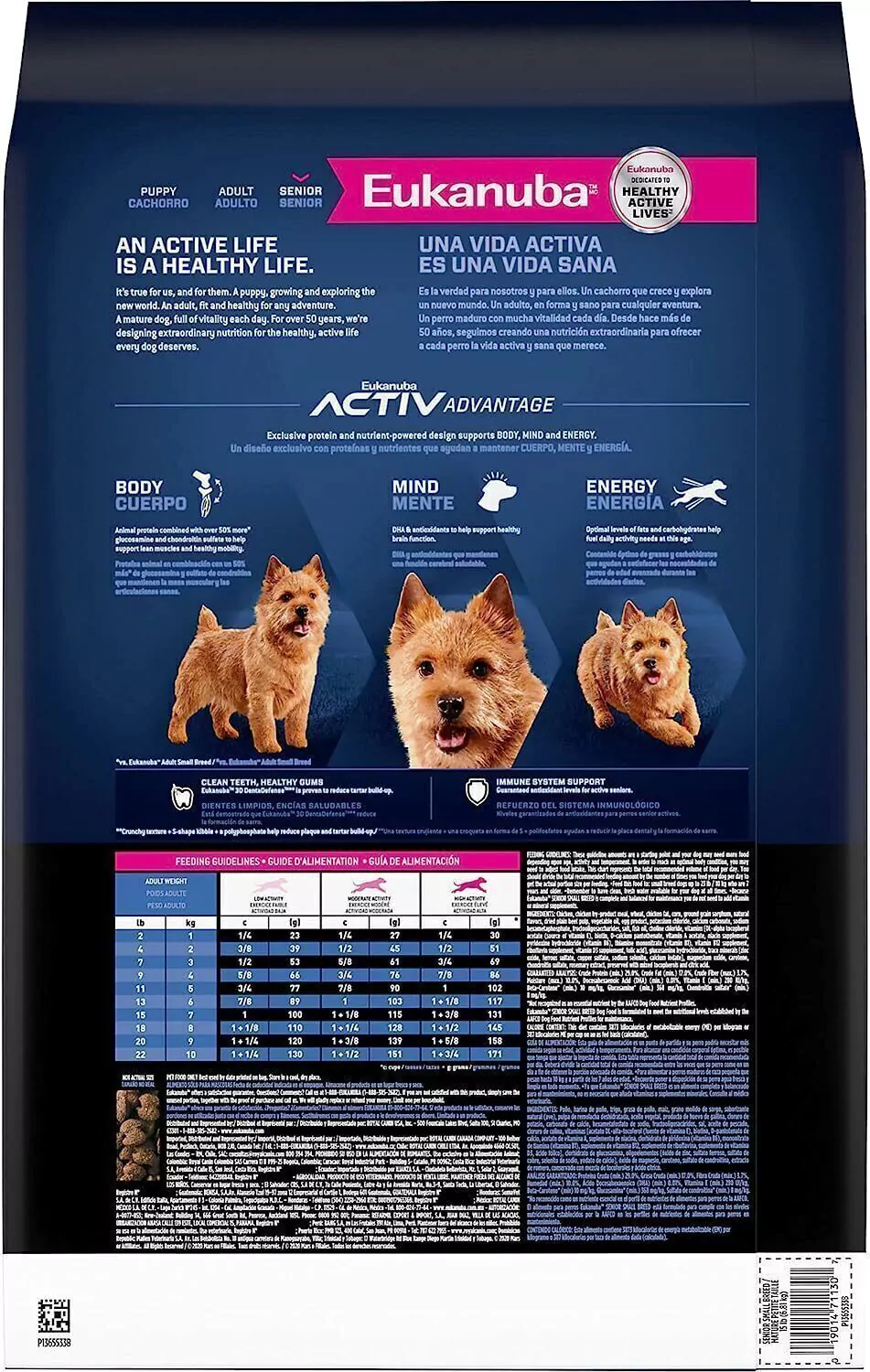 - Alimento para perro raza pequeña Eukanuba senior especialmente diseñado para perros de raza pequeña desde los 7 años de edad que pesan hasta 10 kg