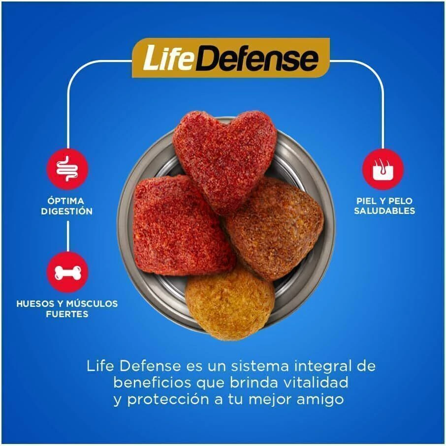 Harina de carne de res, carne de pollo, harina de pescado, maíz, arroz, grasa de pollo, pulpa de remolacha, y una mezcla de vitaminas y minerales esenciales para el desarrollo óptimo de tu perro.