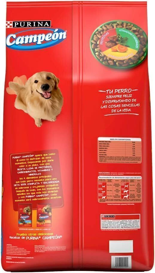Dale a tu perro la alimentación que merece con Purina Campeon Carne con Vegetales Adulto 25 kg, un alimento pensado para que tu compañero peludo disfrute cada día con salud, vitalidad y alegría.